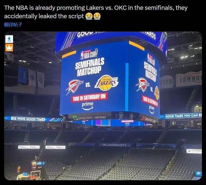 证据就是大屏幕晒出雷霆VS湖人的信息